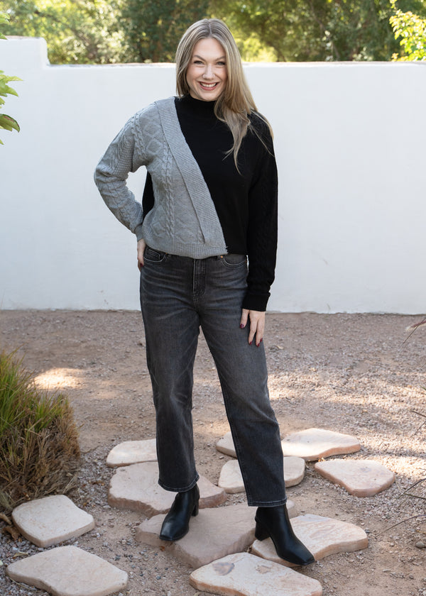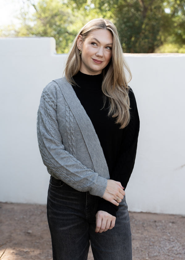 Styling Tips: Throw this sweater on with your favorite pair of denim, including a grey or black pair. It's also great with a high waisted legging when you're running errands on a cool day. Tuck in the bottom band for a more fitted look.